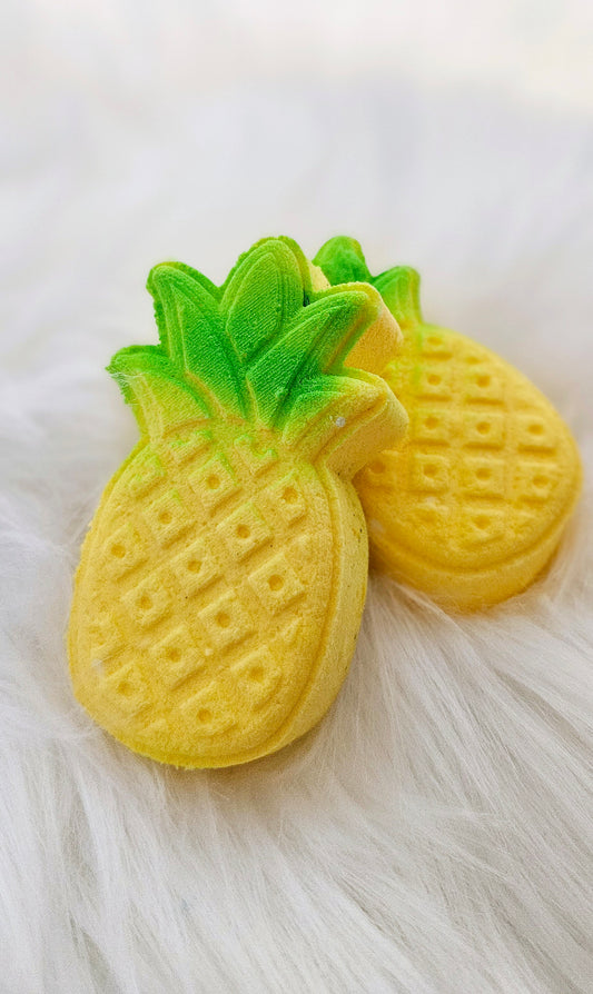 bombe de bain ananas et coco avec insertions de couleurs