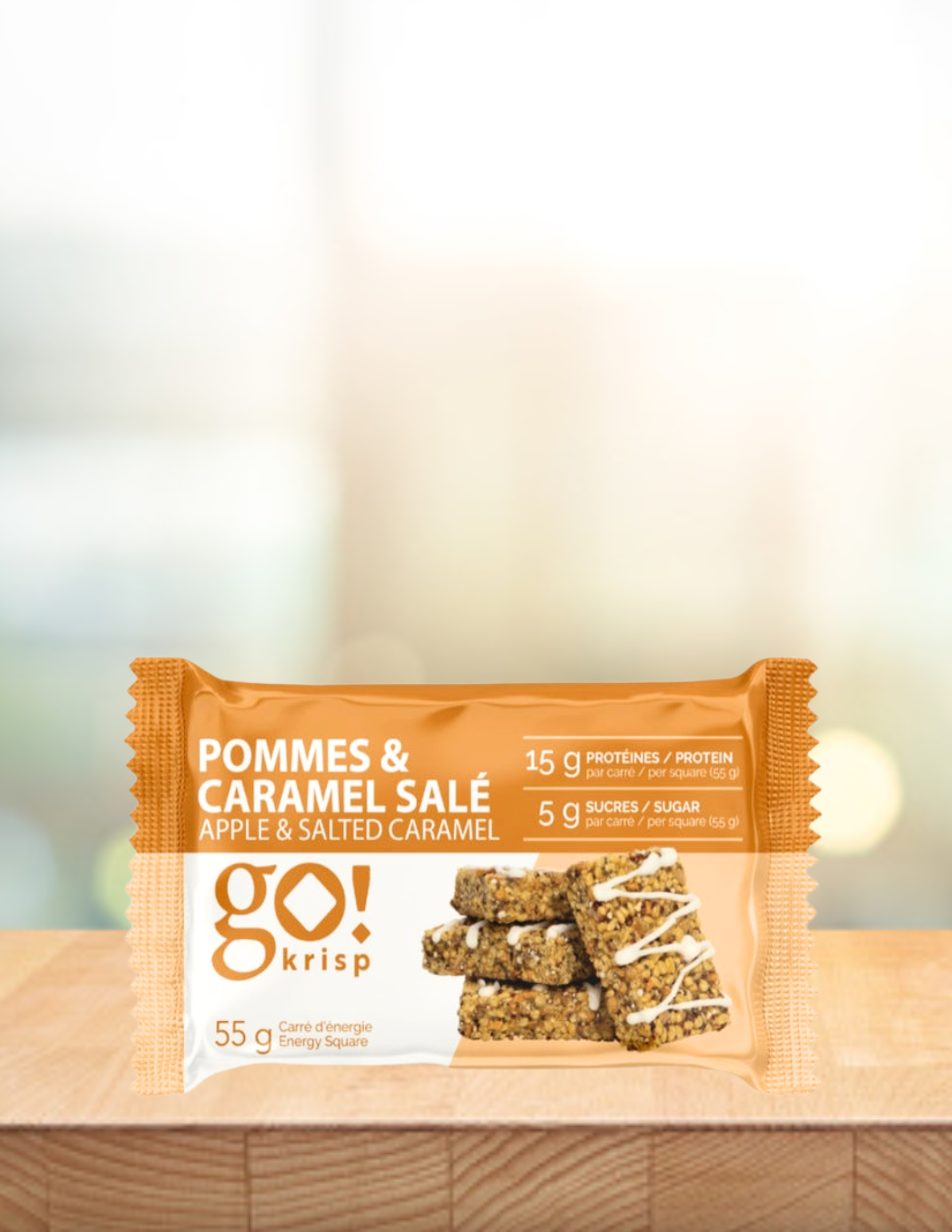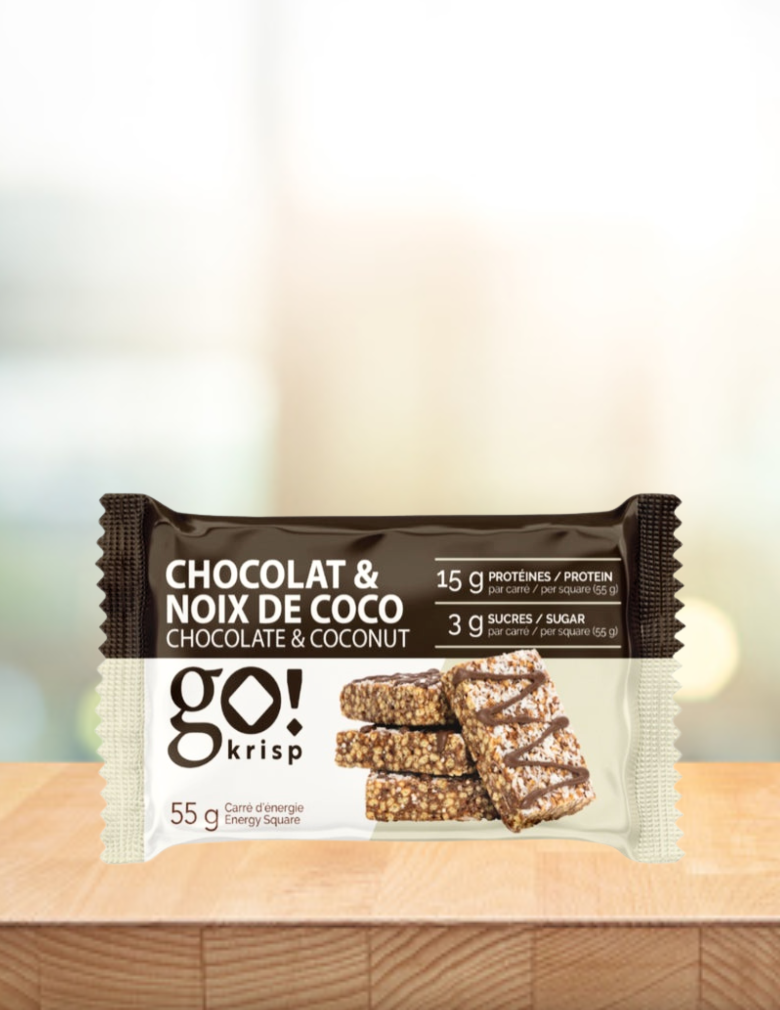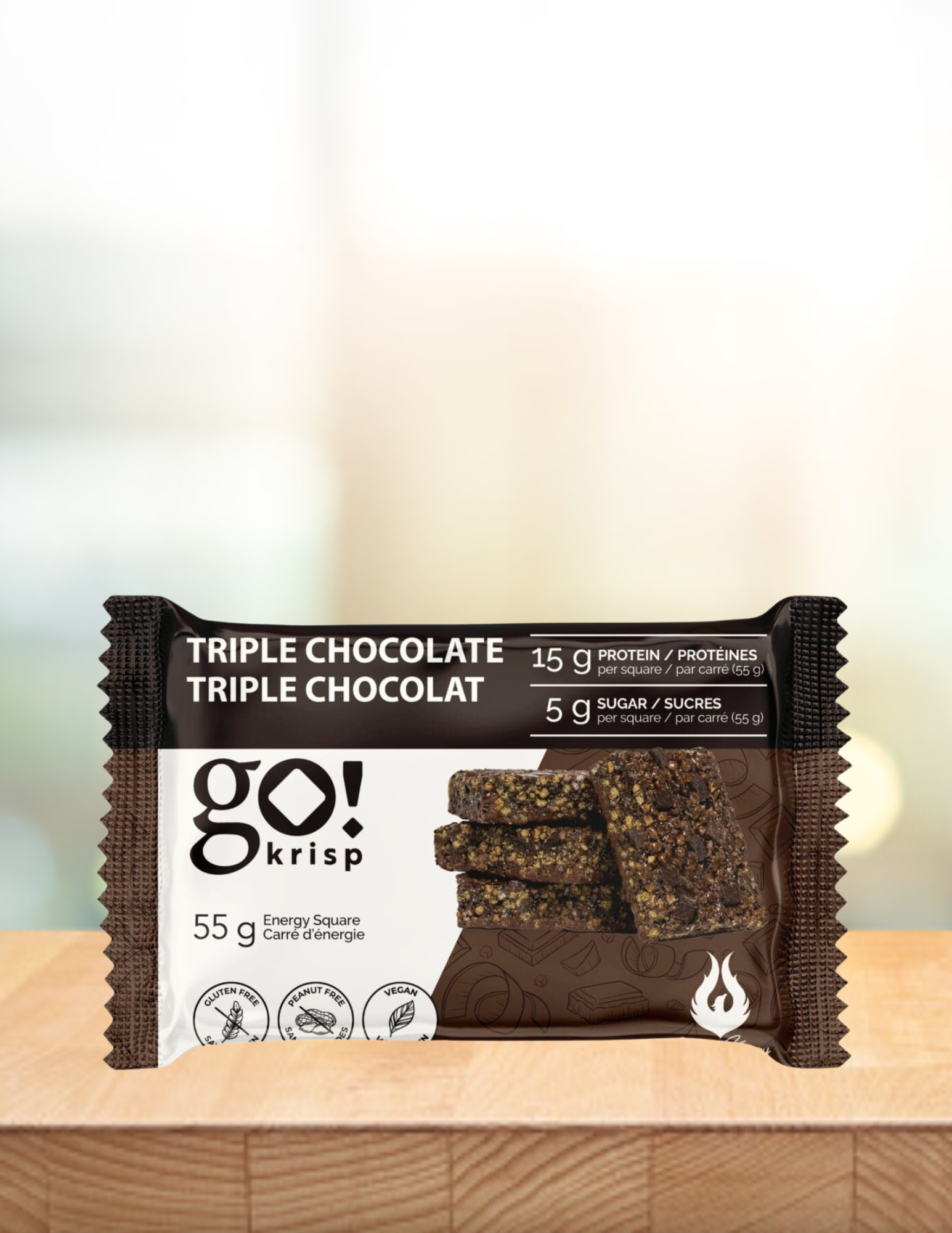 Go Krisp! est un carré protéiné prêt à manger à base de protéines végétales texturées (PVT). Développées avec des nutritionnistes et des chercheurs pour en faire une collation parfaite à ajouter à votre boîte à lunch ou dans votre sac de sport.