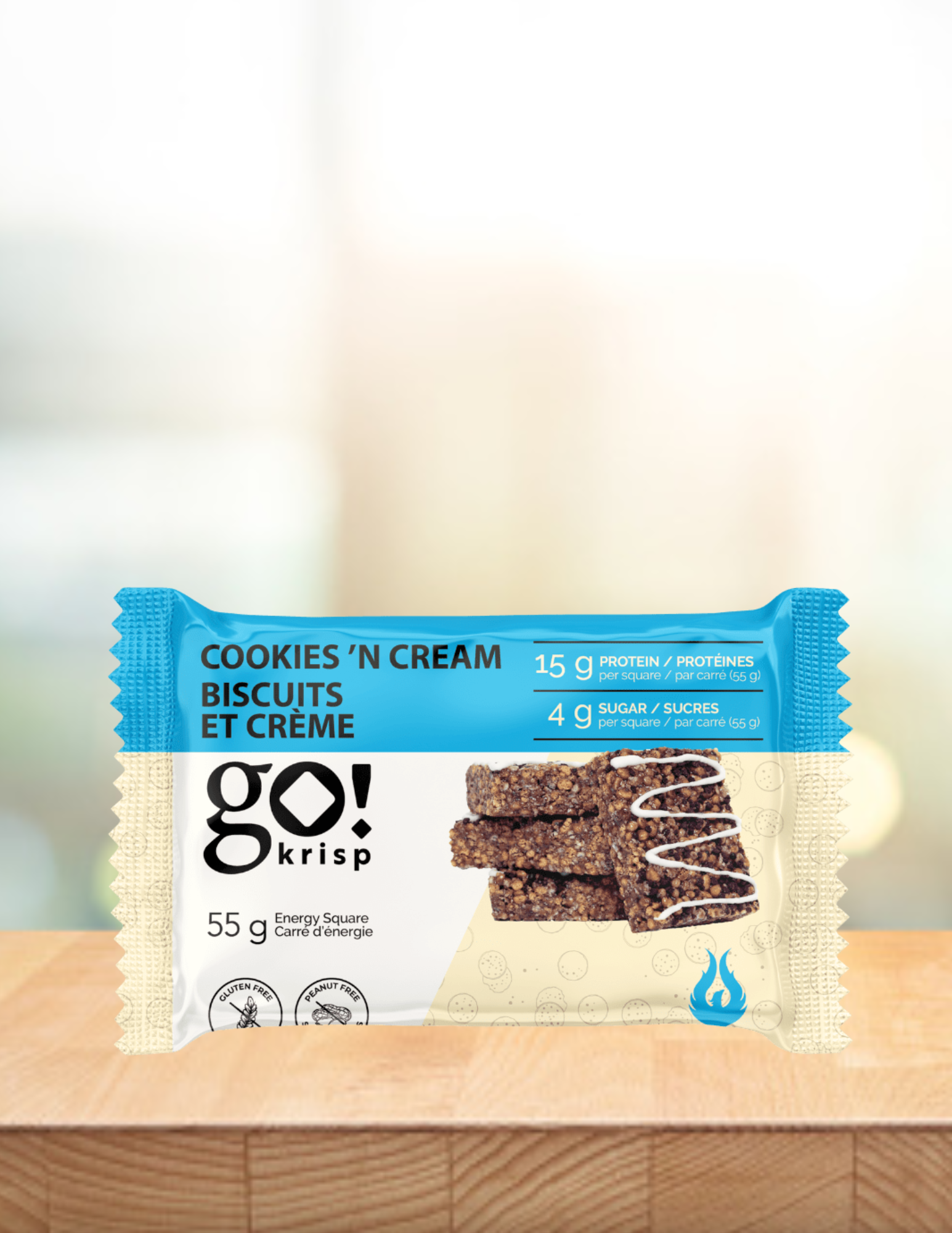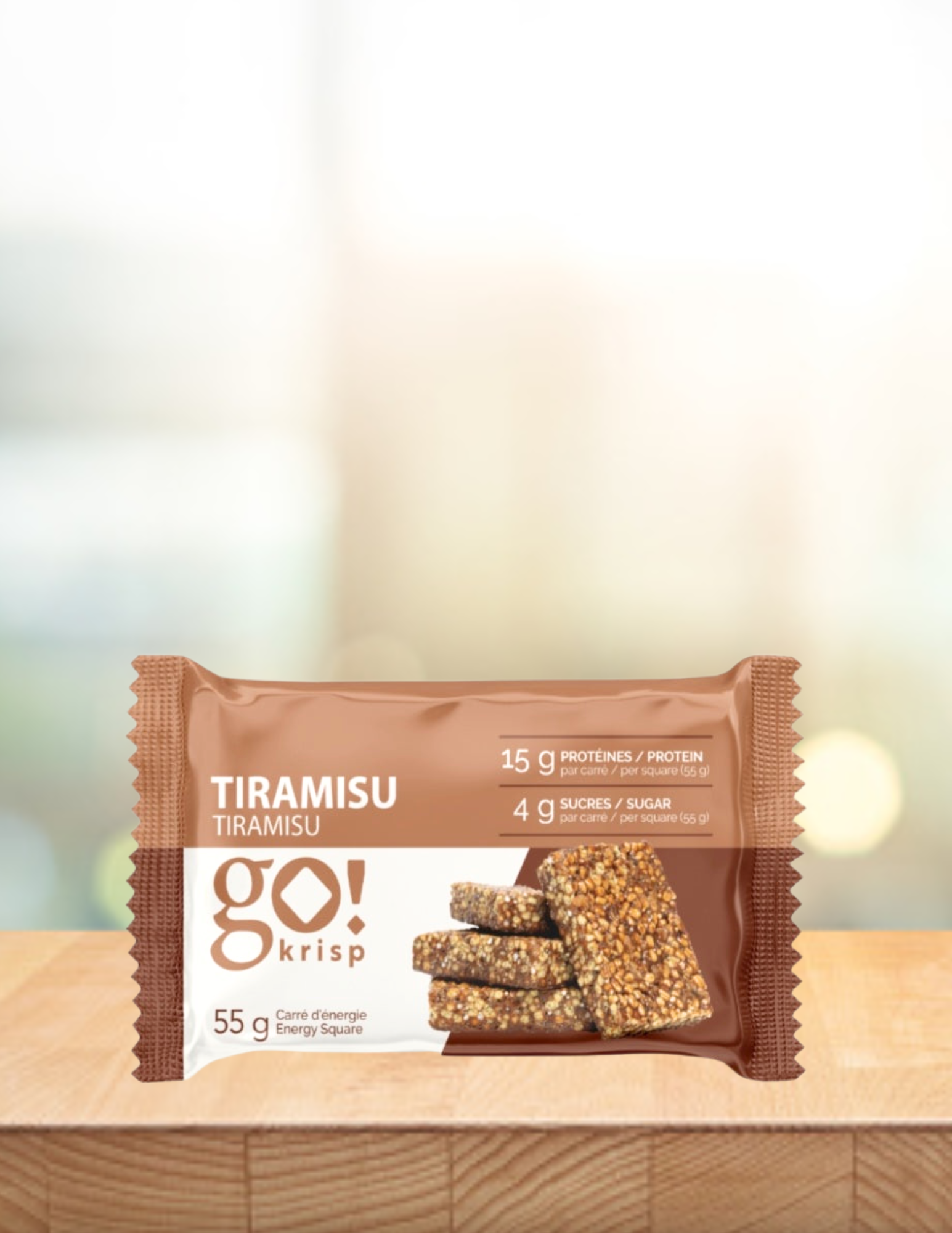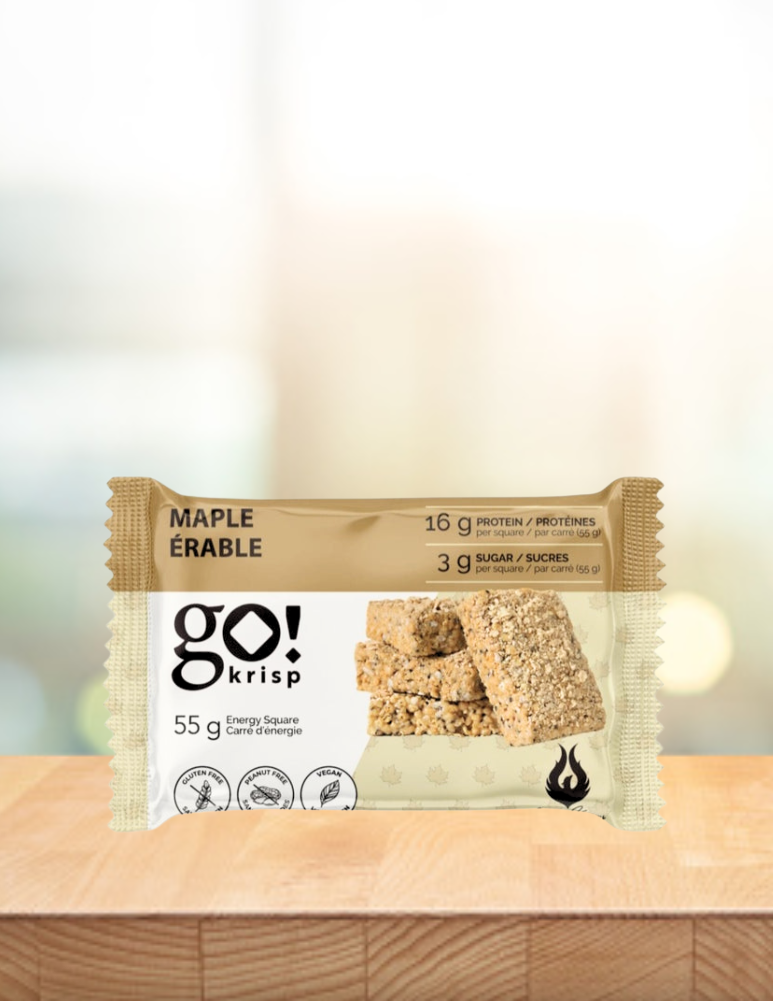 Go Krisp! est un carré protéiné prêt à manger à base de protéines végétales texturées (PVT). Développées avec des nutritionnistes et des chercheurs pour en faire une collation parfaite à ajouter à votre boîte à lunch ou dans votre sac de sport.