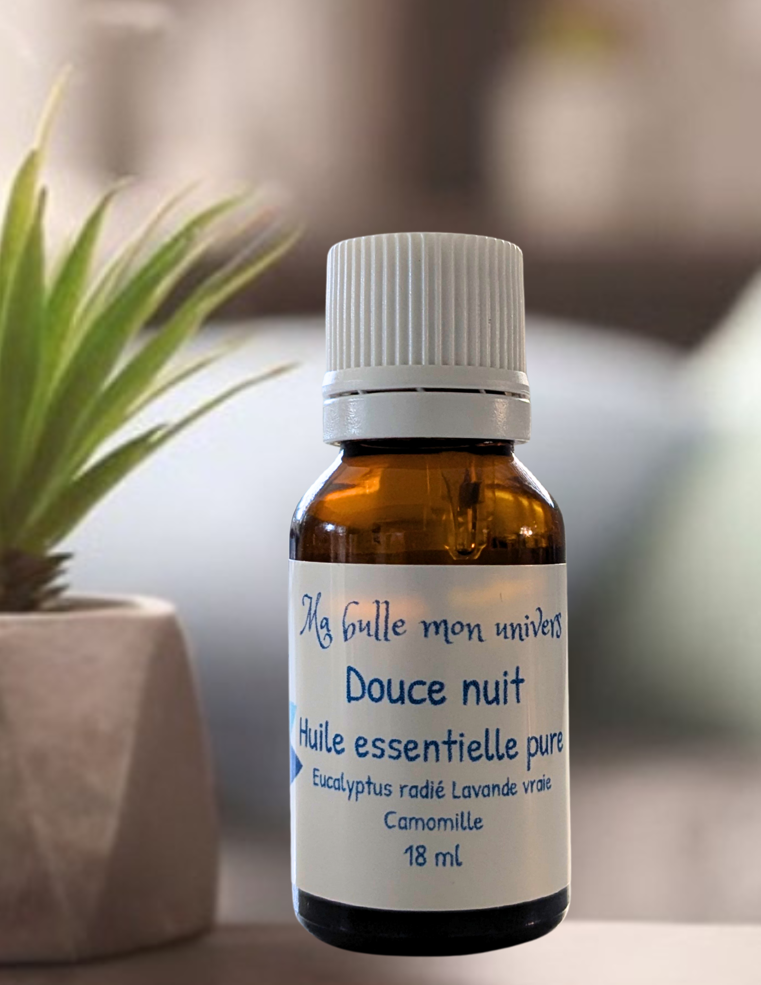 La synergie Douce nuit est composée d'huile essentielle de lavande vraie et d'eucalyptus radié. Elle peut être utiliser chez les enfants de 3 mois et plus. Pour aider au dodo et diminuer le stress